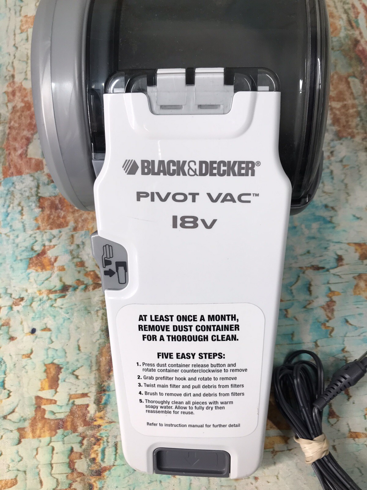 Black and decker pivot vac 18v manual. High performance motor provides superior suction capability. Phv1210 phv1810 vacuum cleaner pdf manual download. Some known failures of this device are the motor the battery and the charging port. This black and decker pivot vac is an 18v cordless handheld vacuum.