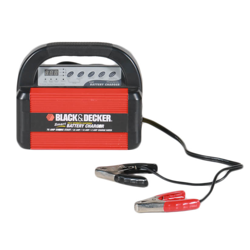 Black and decker smart battery charger 75 amp The black decker bc25bd bench battery charger and maintainer also features a 75 amp engine start which helps start your vehicle in about 90 seconds for when you need to get back on the road quickly.