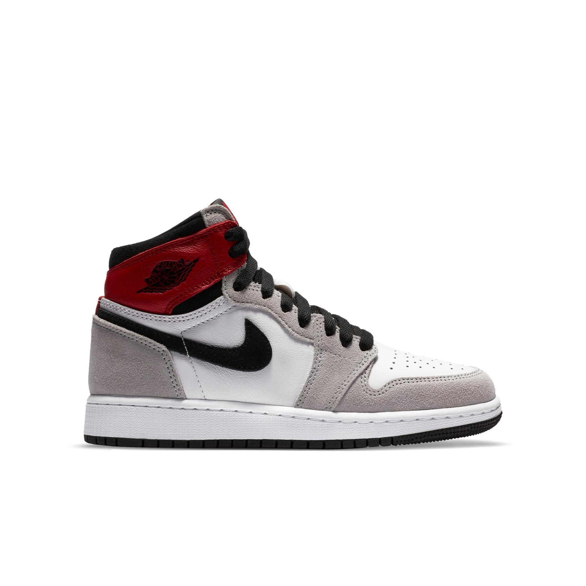 Bitte habe etwas geduld falls du noch keine nachricht bekommen hast. One of the league s most popular players jordan was heavily sought after by brands but only nike was willing to design a sneaker just for him. The air jordan 1 retro high og white black light smoke grey grade school kids shoe captures the original look of mj s first signature model.
